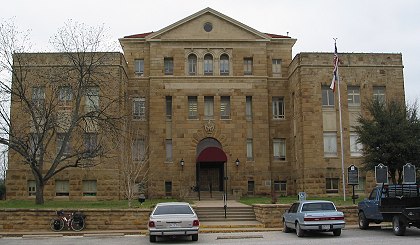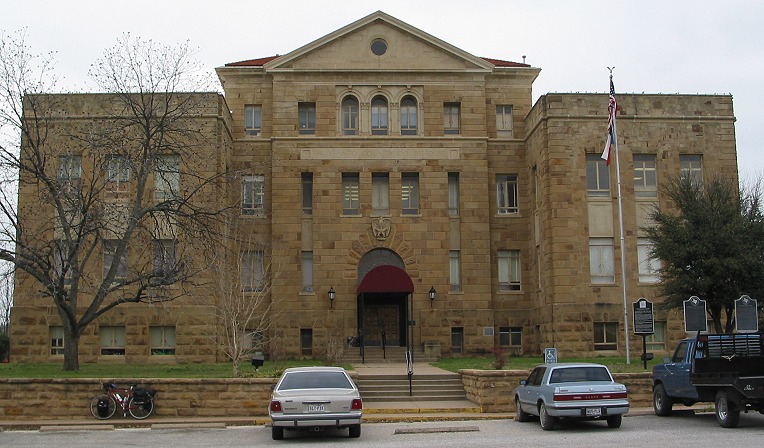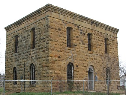 The old Palo Pinto County jail matches the nearby courthouse. |