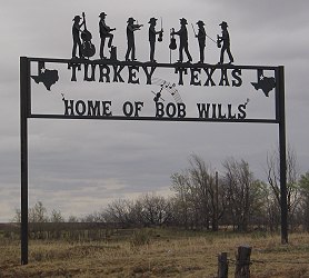 Turkey was the home of Bob Wills, one of the all-time greats of western swing. Bob Wills and His Texas Playboys are credited with introducing horns, drums and electric guitars to country music, changing its course forever.