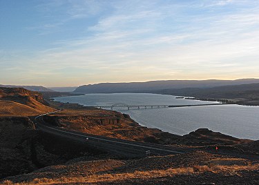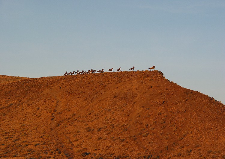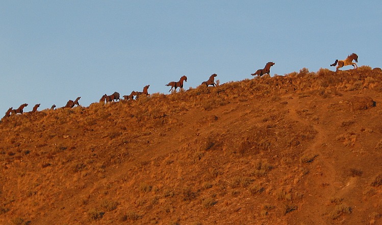 The Wild Horses Monument overlooks the Interstate 90 bridge over the Columbia River near unincorporated Vantage. This artwork is called "Grandfather Cuts Loose The Ponies." From the eastbound rest area, visitors can climb up to the horses, but I didn't have time.