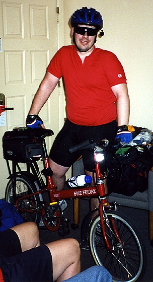 There were a few tight spots with road construction, but otherwise it was an uneventful ride home from there. SR 87 crossed the Salt River and turned into Country Club Drive, which took me right to the motel. I arrived at 5:00, a full hour before The Man at the End of the Map had predicted, despite stopping for the flat tire. I had to guess my mileage because I didn't have a cyclometer on my Bike Friday yet. On my Phoenix bike map, I roughly measured 93 miles for my basic route with the curves straightened out. I was confident that my actual mileage was at least 100 miles, my first century of the year (in fact, my first century of the new millennium).