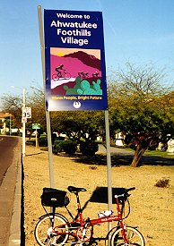 The Ahwatukee Foothills Village sign featured bicyclists. |