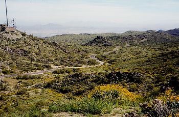 The TV antennas atop South Mountain were a good, long 7-8 mile climb away. The scenery was spectacular as the twisting road revealed ever-changing vistas. The climb seemed endless. The way the road wound around the mountain, I couldn’t see the end.