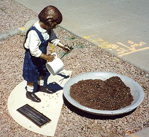 This little girl was watering her garden. |