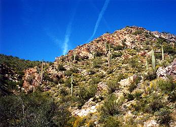Saguaros dotted the rocky hillside. |