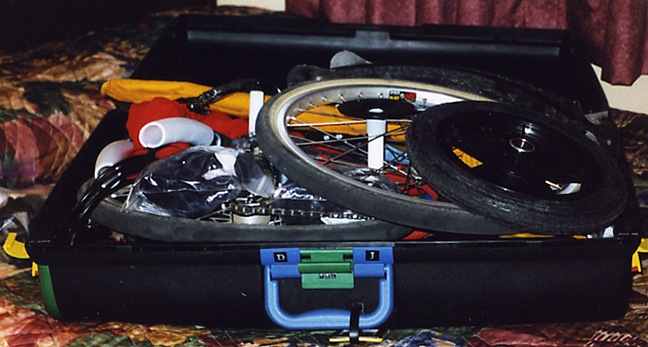 My Bike Friday fit into the suitcase with clothing for extra padding. |