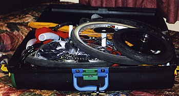 After a 60-70 mile day, I returned to the motel. I finished my 2001 Tour de Arizona with at least 270 miles in four days of riding, plus I got to see a Cubs victory. I was pleased with my new Bike Friday. Aside from my tumble on the first day (probably my own fault for not adjusting the rear derailleur) and a virtually unavoidable flat the next, everything had gone pretty well. On Saturday, I enjoyed the convenience and the novelty of assembling a bicycle out of a suitcase. I confirmed on Sunday that the bike was comfortable for a long day in the saddle, and on Monday and Wednesday, I validated my choice of gearing on challenging mountain climbs. I would wholeheartedly recommend a Bike Friday to anyone who wants to travel, whether touring with the trailer or day-tripping with a rack pack < end of commercial!> .