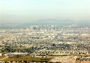 Downtown Phoenix was obscured by smog. |