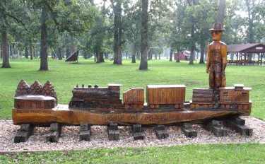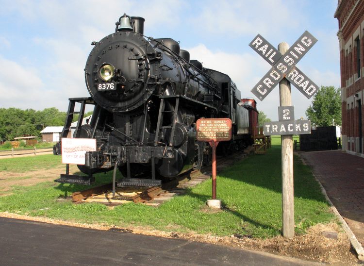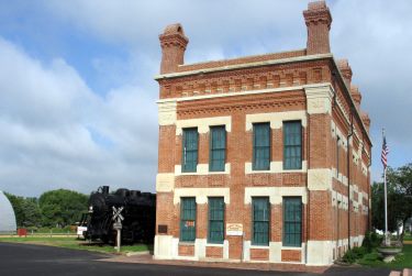 Amboy began as a railroad town. Although the trains don't run and the tracks are gone, the striking two-story depot has been made into a museum. A union monument, a steam locomotive with coal car, a caboose, and railroad signs are also on the grounds.