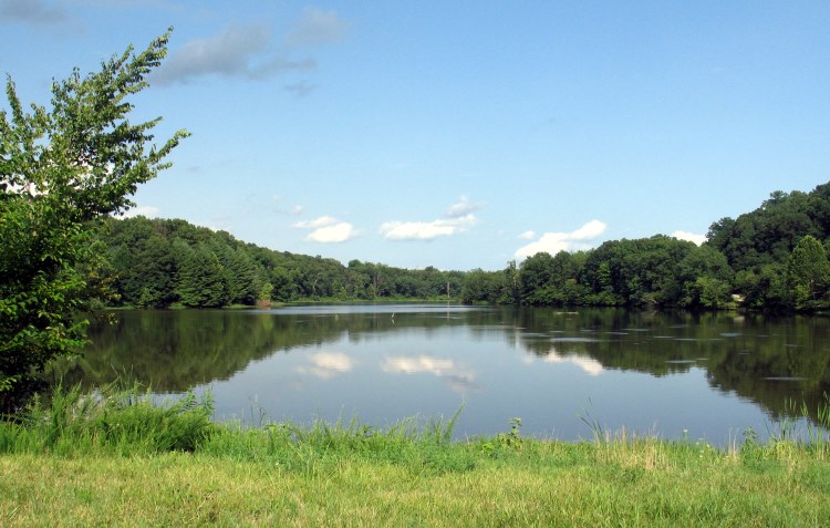 This photo of Kinkaid Lake was cropped to be vertical for inclusion in Biking Illinois.