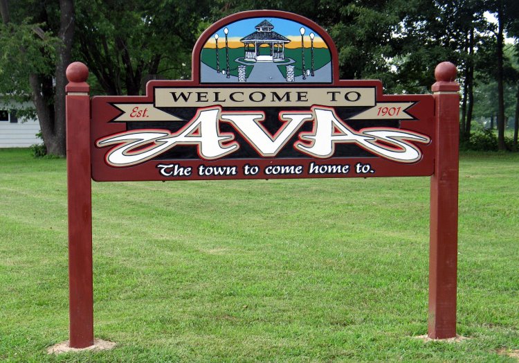 Starting and ending in the quiet town of Ava, this hilly ride contrasts