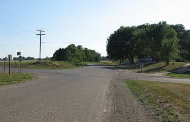 This is the intersection at the Hialeah Club. Curve to the left onto North Buzzville Road, but don't turn left.
