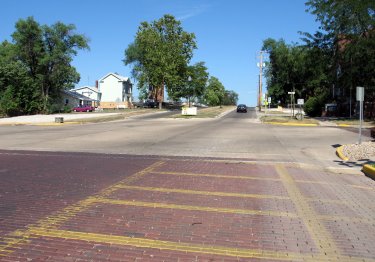 This is the intersection where the ride begins, at the end of the brick section of Main Street.