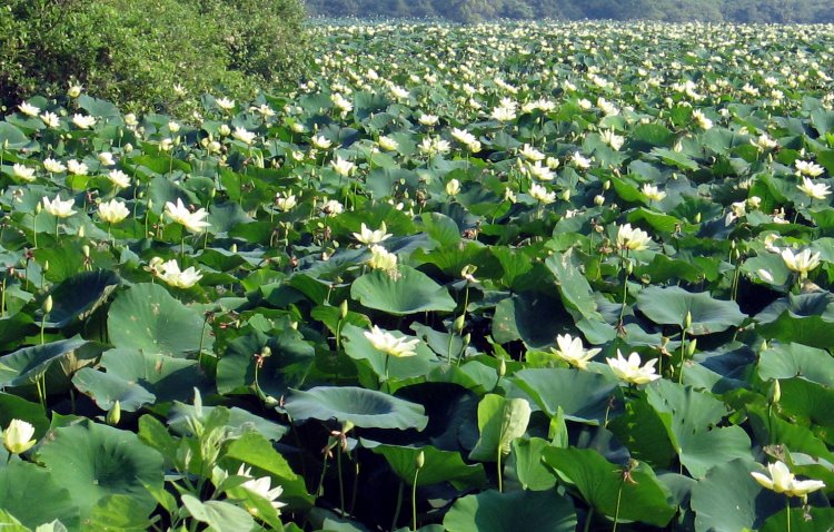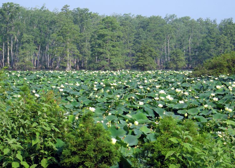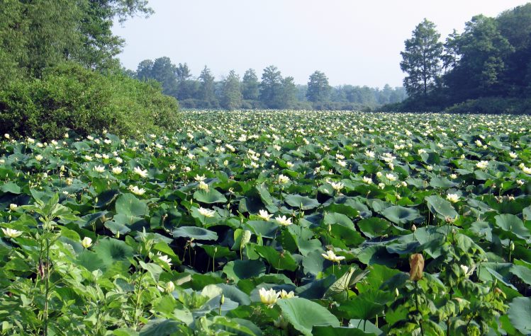 The wild lotus plants in full bloom were a pleasant surprise when I pedaled the route in early July.
