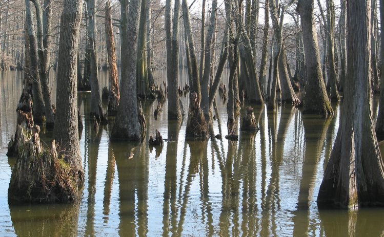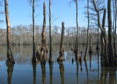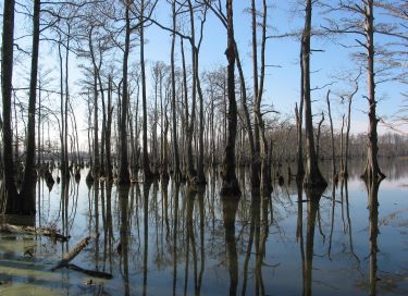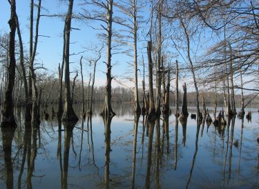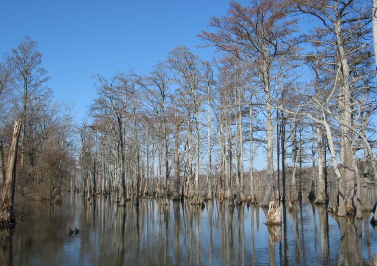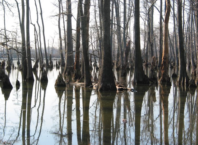 This flat ride is much easier than the other ride that starts in Olive Branch. The leafless photos are from a scouting expedition in December 2004. The greener photos are from July 2005. What I love about this area is that it looks like a Louisiana bayou. The only other place in Illinois that I know of like this is Cache River State Natural Area  at the south end of the Tunnel Hill State Trail.