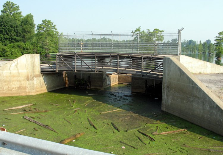 This is the spillway  that keeps the water level at four feet  in Horseshoe Lake.