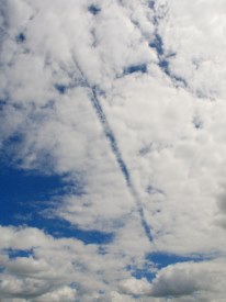I don't think I've ever seen this before -- a reverse jet trail through a cloud.