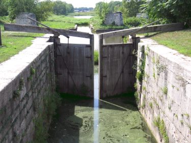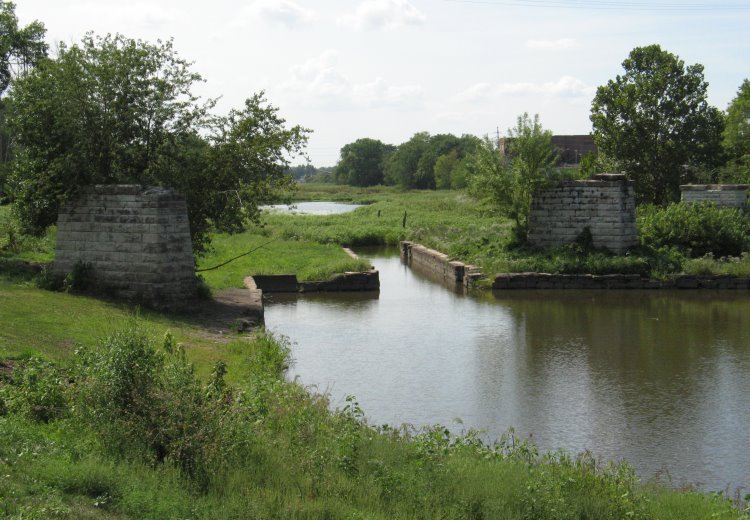 Here are the remains of the last lock on the canal, Lock 15, along with the supports of what was probably a railroad bridge.