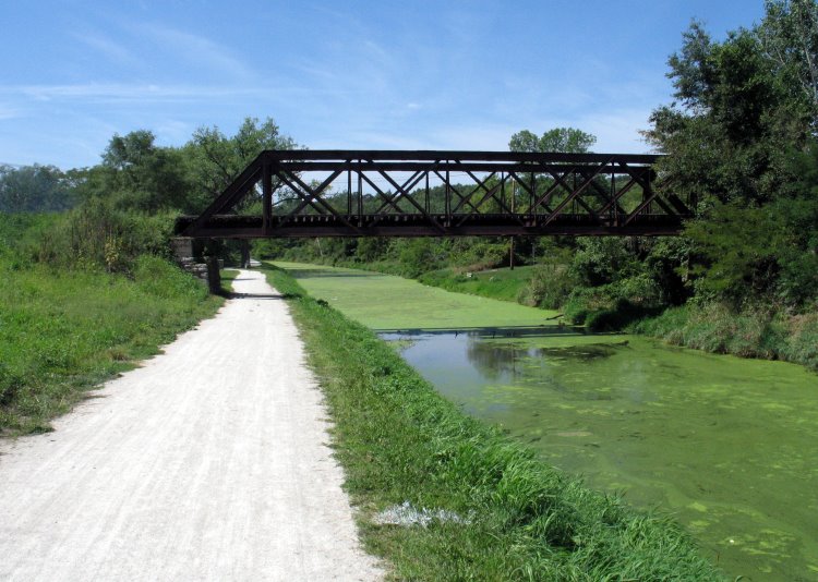 The trail and the canal cross the Little Vermillion River Aqueduct.