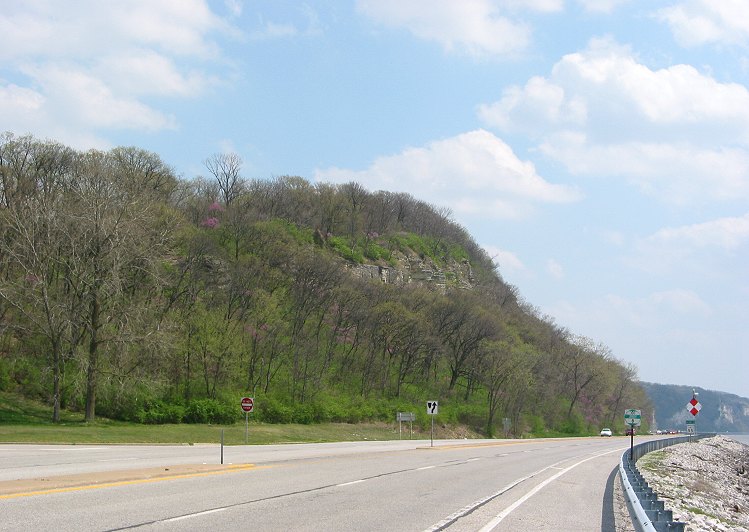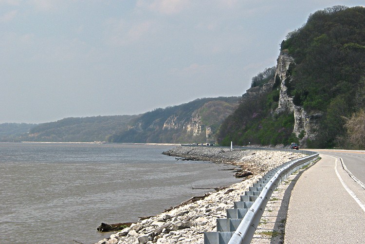 I talked to a local man as I prepared for my ride. He was still waiting for a friend when I departed. They passed me just a few miles down the road while I was taking pictures. The trail runs next to IL 100 for several miles, sometimes separated by a guardrail or a narrow, grassy median. There are some dangers in bicycling beside high bluffs:
