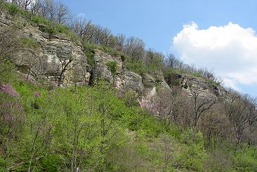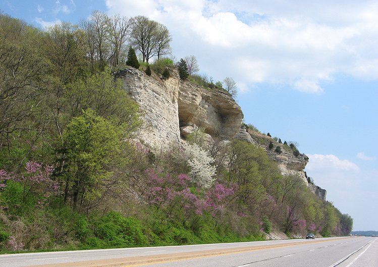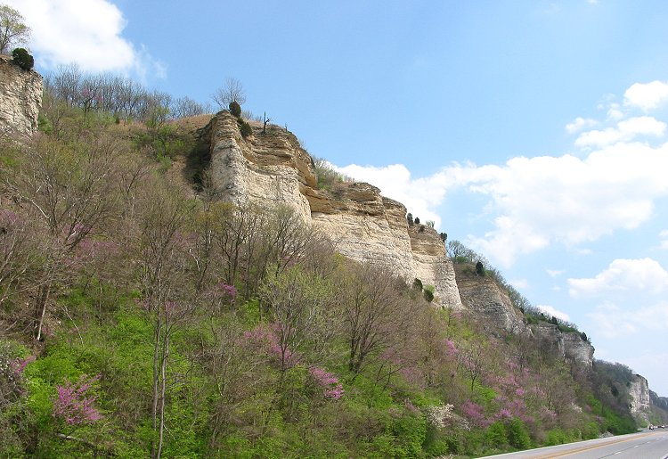 The ride west beneath the awesome bluffs was neat, but the ride back to Piasa Park was more scenic because I could view them from across IL 100: