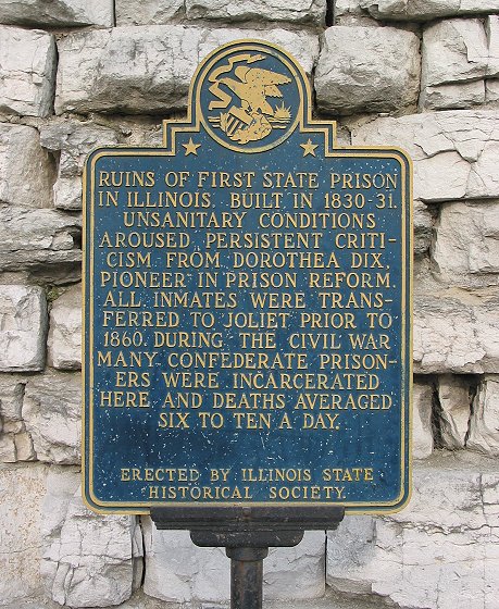 The next site was more infamous: the remains of Illinois' first penitentiary. The prison drew the ire of activist/reformer Dorothea Dix in 1847. In the next decade, prisoners were transferred to the new prison in Joliet. The Alton prison closed in 1860, but it soon reopened to house Confederate prisoners. Unfortunately conditions had not improved one bit, and many interred soldiers died. After the Civil War ended, it was closed for good and torn down except for the wall that stands today: