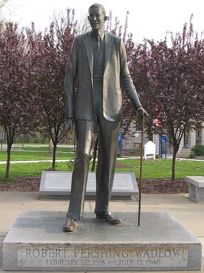 Since there was still a chill in the morning air when I arrived in Alton, I stopped to see a few things around town before I began my ride. My first stop was a monument dedicated to Robert Wadlow. This man loomed large over Alton--he was nearly nine feet tall and weighed 490 pounds! Wadlow was a friendly man, a gentle giant, and he was much-loved in this town. Sadly, his unusual enormity led to an early death at age 22: