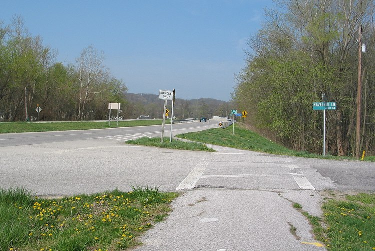 After 5.5 miles, the bike trail moves onto the IL 100 shoulders. Cyclists ride with traffic (eastbound cyclists use the opposite shoulder) and may cross over anywhere there is a gap in the median: