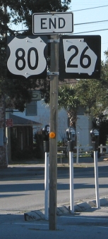 The eastern end of U.S. 80 in Tybee Island, a few blocks from the Atlantic Ocean. |