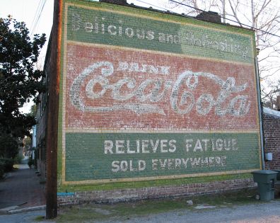 An old Coca-Cola advertisement visible from Liberty Street in Savannah. |
