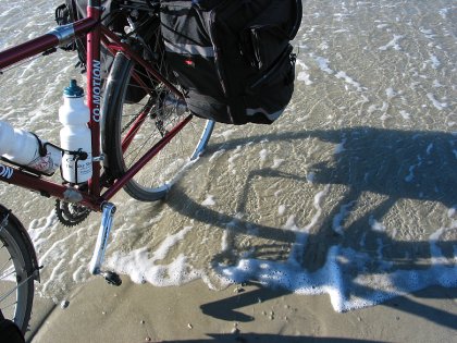 The official wheel-dipping ceremony. Of course, I had a lot of sand to clean off the bike afterwards. |