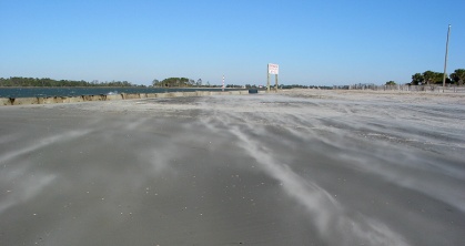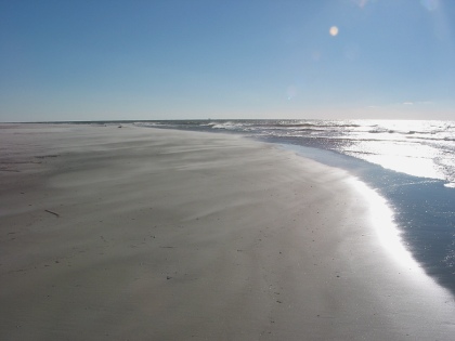 Sand blowing across the wet beach. This wasn't the nicest day to be on the coast, and I'd have to fight that wind to get back to the mainland. |