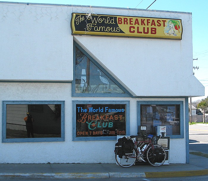 I ate the first meal of my trip (at least the cycling portion) at  Breakfast Club. Notice my reflection in the window on the left. |