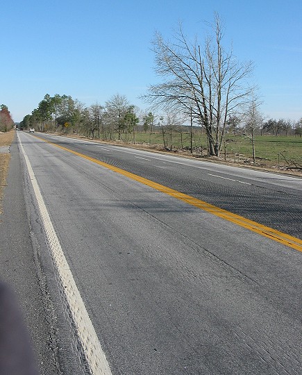 There were many long, gradual hills on the road to Metter. Notice the odd texture of the pavement. |
