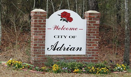 Adrian's welcome sign. I didn't see much in Adrian--just a home factory, a restaurant, a resale shop and a bunch of dogs roaming the streets. |