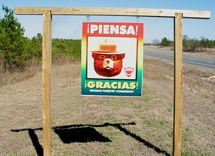 I was surprised to see a Smokey the Bear sign in Spanish out in the middle of nowhere in western Georgia. |