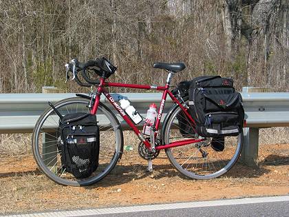 The sun was shining, and it had been days since I last photographed my bike. This was about 450 miles into the  trip. |