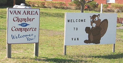 The Van Area Chamber of Commerce and the Woodchucks greeted me. I thought perhaps the Woodchuck was the school mascot, but I found out later that Van's teams are the Vandals. The Woodchucks are a club for woodshop students who make benches and park equipment  for the town. |