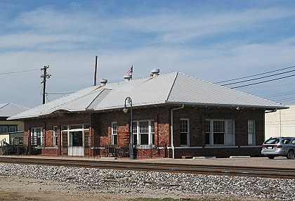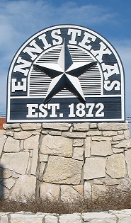 The popular Lone Star is incorporated into this sign for Ennis, " Where Railroads and Cotton Fields Meet." Ennis is also known as " The Bluebonnet City of Texas," but I was a month too early to see them in bloom. |