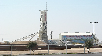 The cow-spotted cement mixer trucks of Colorado River Concrete were everywhere around Alvarado. |