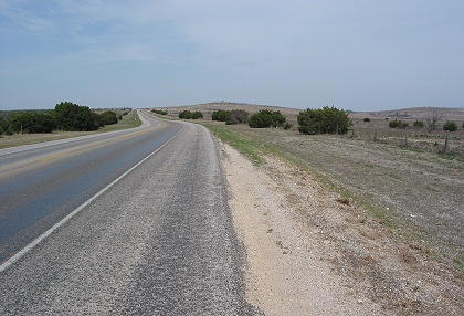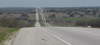 US 180 from Weatherford to Mineral Wells was a broad four-lane highway. The westbound lanes (on the left) are newer than the eastbound lanes--one can tell because they are more straight and less undulating. |