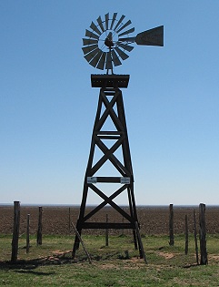 This windmill was situated at a roadside park with no explanation except the ubiquitous " No Trespassing" and " Not Responsible For Accidents." |