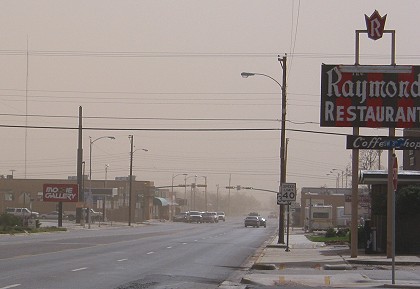 The sky was just as dusty to the east. I ate a couple of meals at the  Raymond Restaurant next to the motel. |