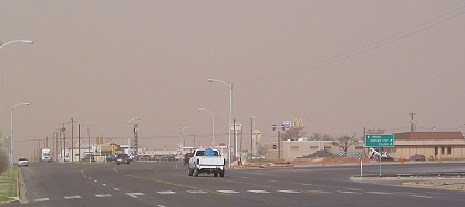 This was the sky at 10:00 AM. Just imagining the grit in my teeth was enough to promptly send me to the motel office to pay for another night. |