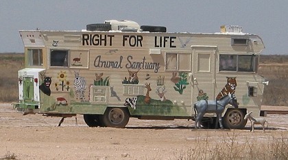The Right For Life Animal Sanctuary camper  was one of the few sights  between Lake Arthur and Hagerman. |