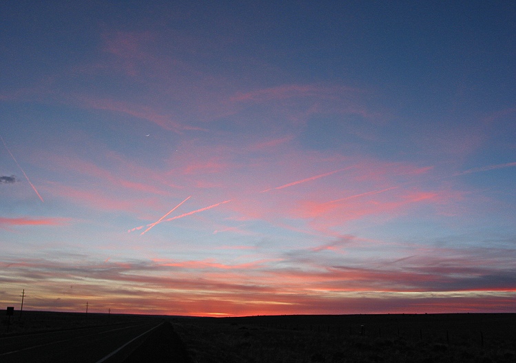 This was a rarity on my trip--a sunset photograph. Usually by sundown I was either eating or napping. This time I was still on the road. |