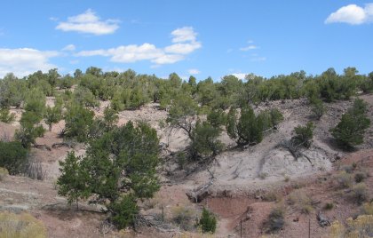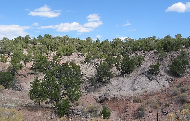 Short evergreens like these grew alongside US 60 west of Quemado. |