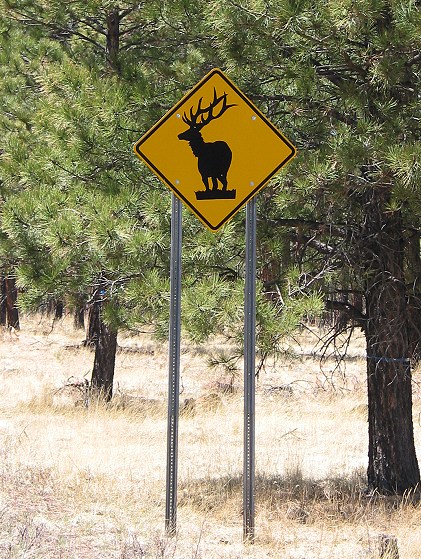 The only animals I saw in the mountains were a few  deer--certainly nothing with such a magnificent rack as the elk on this sign. |