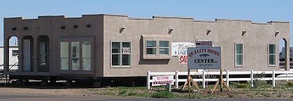 I saw many manufactured homes in the Southwest, but this was the first I saw with an adobe motif (strictly visual and not structural, I'm sure). |