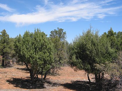 Pine forests lined SR 260. There were bad forest fires around Show Low in the summer of 2002, but I don't know whether this area burned or not. |