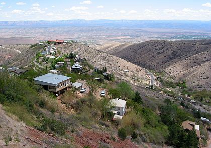 This view of Jerome shows how the town is built on the side of the mountain. |